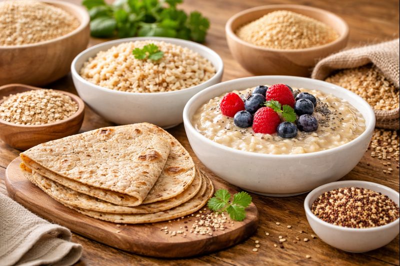 Oats, brown rice, millets, and wheat roti add bulk without irritation, improving regularity.